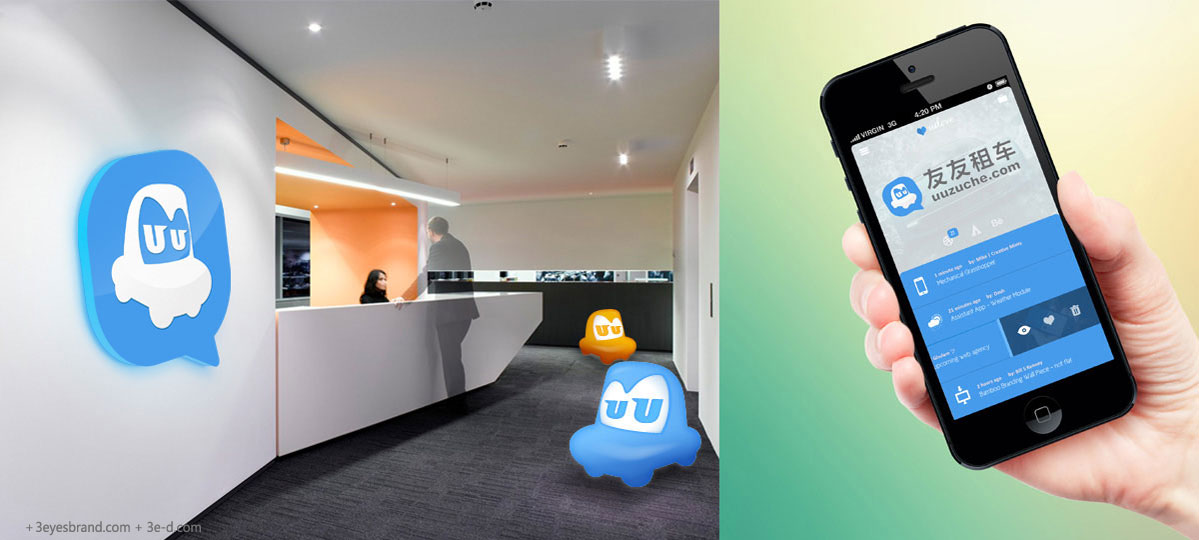 卡通的車(chē)的形象與笑臉相融合,傳遞了“交友”和“租車(chē)”的核心理念,藍色的基調色彩傳達環(huán)保、高效的意識,UU的結合,增加了友友租車(chē)的識別度,增強標志的專(zhuān)屬性和品牌個(gè)性,氣泡代表了友好交流和溝通,也表示了互動(dòng)與參與的移動(dòng)互聯(lián)網(wǎng)社交的重要屬性。